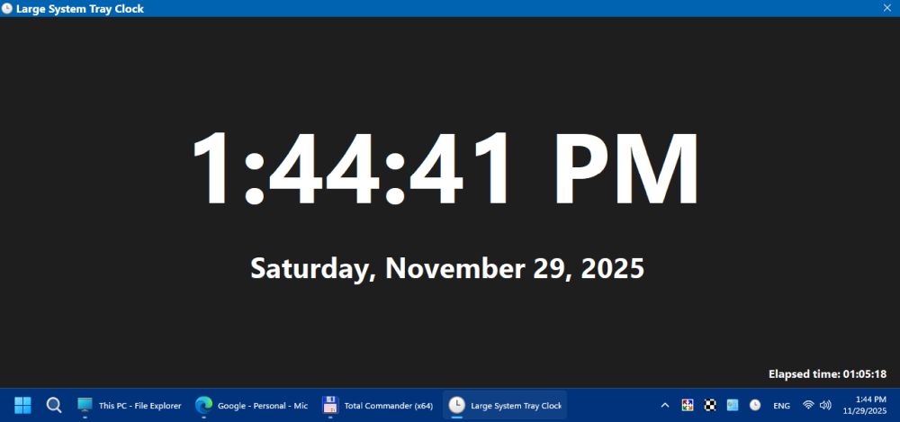 The Large System Tray Clock is designed to replace the original clock in the Windows 10/11 system tray to improve visibility. In addition, the software includes several accessibility features related to clock visibility.