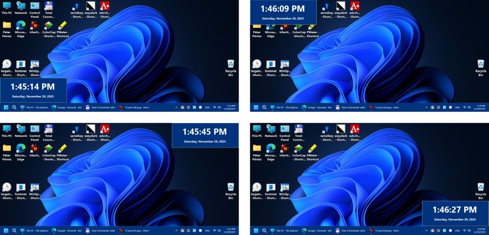 - Besides taskbar mode, the software can display the clock in the screen corners or in full-screen mode.
